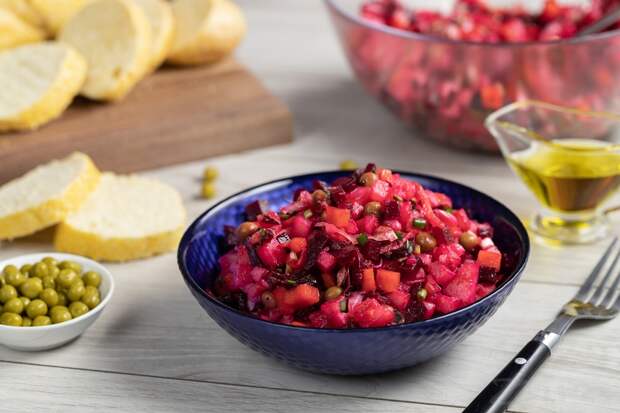 Название салата образовано от французского vinaigre — «уксус», а оно — от слова vin — «вино». Так проще запомнить, как правильно описать овощную смесь. Что касается второй гласной в слове, достаточно помнить, что она не совпадает с первой. Тогда вы будете писать «винегрет» без единой ошибки.